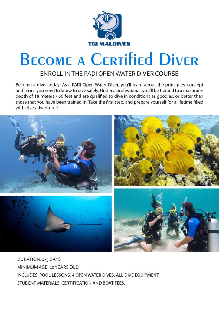(Price includes scuba diving equipment, study materials, certification & required course dives)