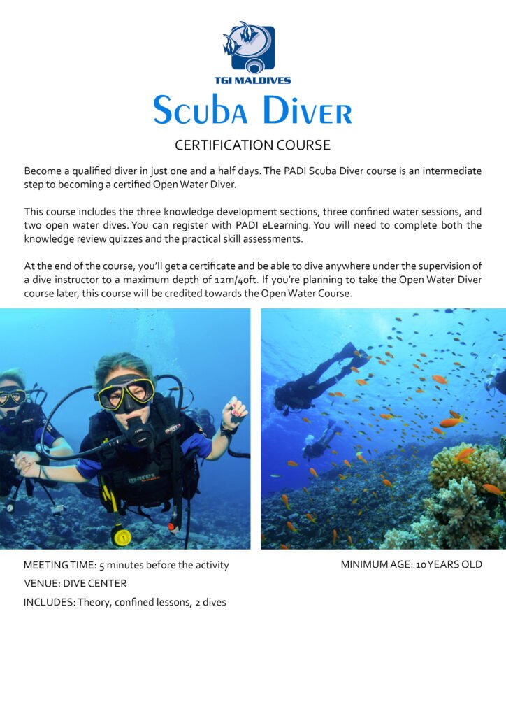 UPGRADE FROM SCUBA DIVER to OPEN WATER DIVER $590